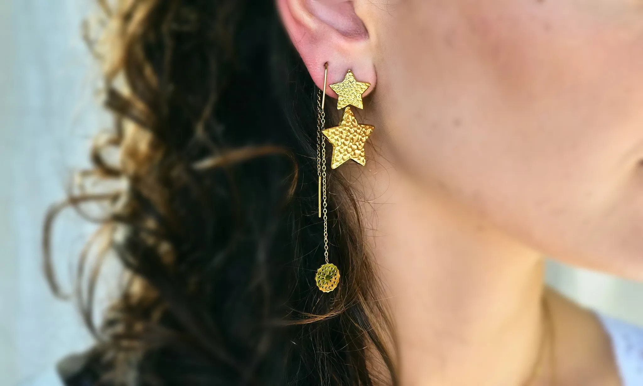 Deze mooie, aparte, bijzondere oorbellen barsten van de details. Een blikvanger. En, heel mooi te combineren. We hebben ook de zilverkleurige variant, voor jouw gemak toegevoegd aan onze gerelateerde producten. Welke vind jij het leukst?